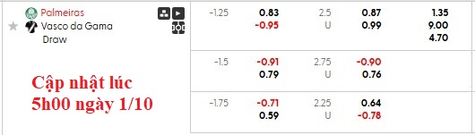 Soi kèo Châu Á Palmeiras vs Vasco da Gama